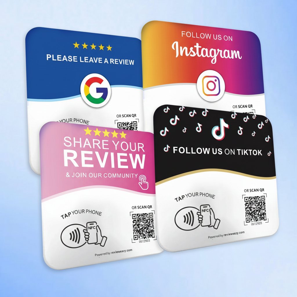 Onze review-producten maken gebruik van NFC (Near Field Communication) technologie. Wanneer een klant zijn smartphone op het review-product tikt, opent er direct een link naar uw beoordelingspagina, website of sociale mediaprofiel, zonder dat een app geïnstalleerd hoeft te worden. Het is snel, eenvoudig en naadloos.