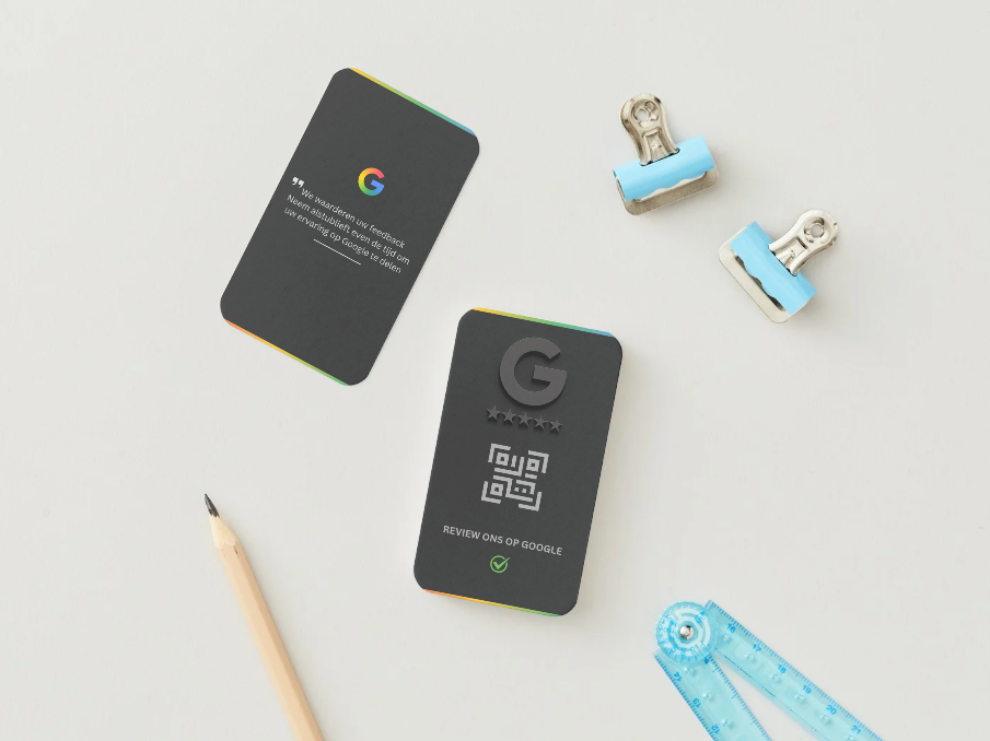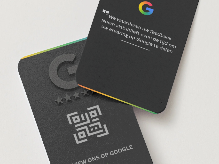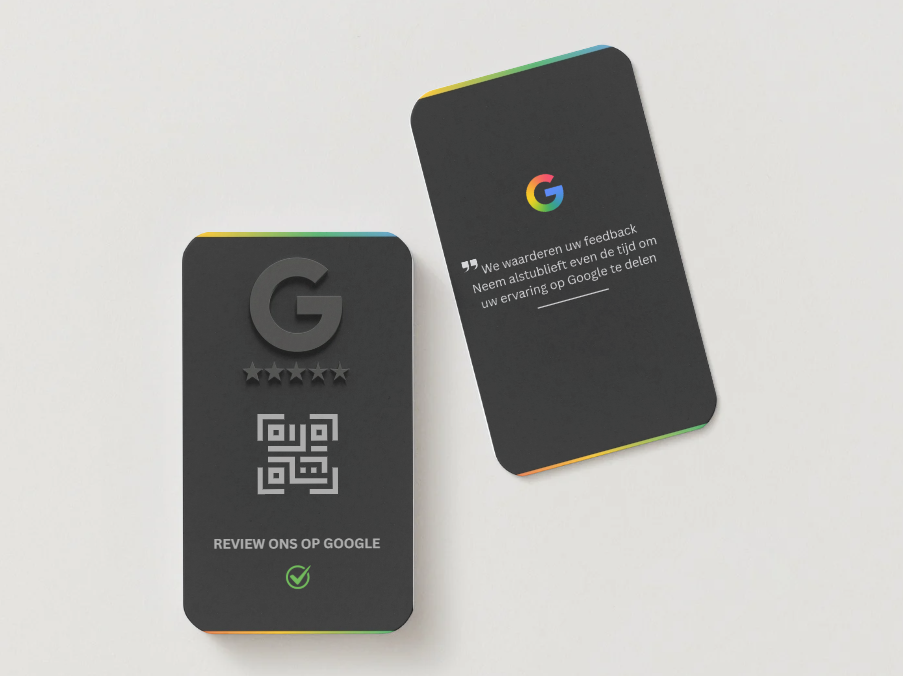 - Wij ontwerpen jouw visitekaart en reviewkaart voor €39,95, inclusief onbeperkte revisies.