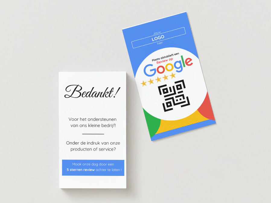 - Wij ontwerpen jouw visitekaart en reviewkaart voor €39,95, inclusief onbeperkte revisies.