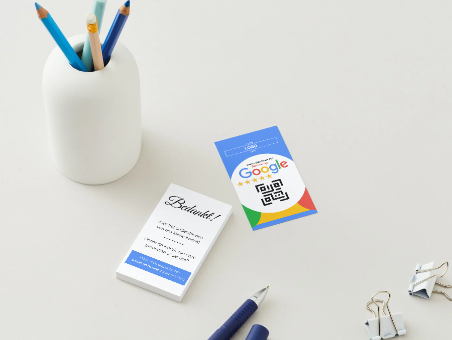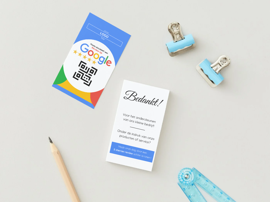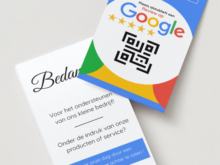 Versterk je online reputatie met onze op maat gemaakte reviewkaart! Deze gebruiksvriendelijke kaart bevat een personaliseerbare QR-code die klanten direct naar jouw Google Bedrijf Profiel leidt. Verzamel snel en eenvoudig waardevolle klantreviews en bouw meer vertrouwen op bij potentiële klanten.