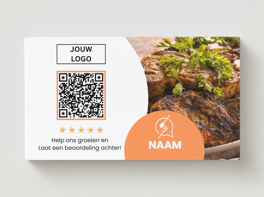Versterk je online reputatie met onze op maat gemaakte reviewkaart! Deze gebruiksvriendelijke kaart bevat een personaliseerbare QR-code die klanten direct naar jouw Google Bedrijf Profiel leidt. Verzamel snel en eenvoudig waardevolle klantreviews en bouw meer vertrouwen op bij potentiële klanten.