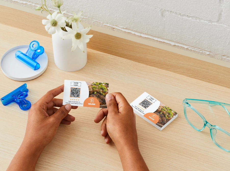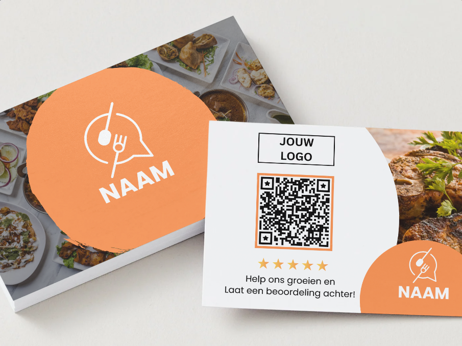 • Wij ontwerpen jouw visitekaart en reviewkaart voor €39,95, inclusief onbeperkte revisies.