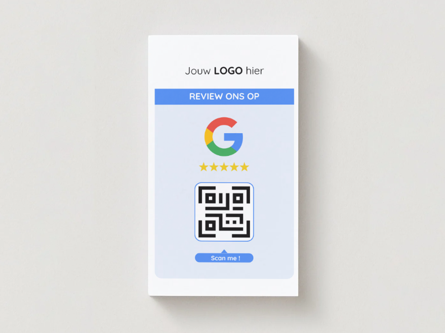 Versterk je online reputatie met onze op maat gemaakte reviewkaart! Deze gebruiksvriendelijke kaart bevat een personaliseerbare QR-code die klanten direct naar jouw Google Bedrijf Profiel leidt. Verzamel snel en eenvoudig waardevolle klantreviews en bouw meer vertrouwen op bij potentiële klanten.