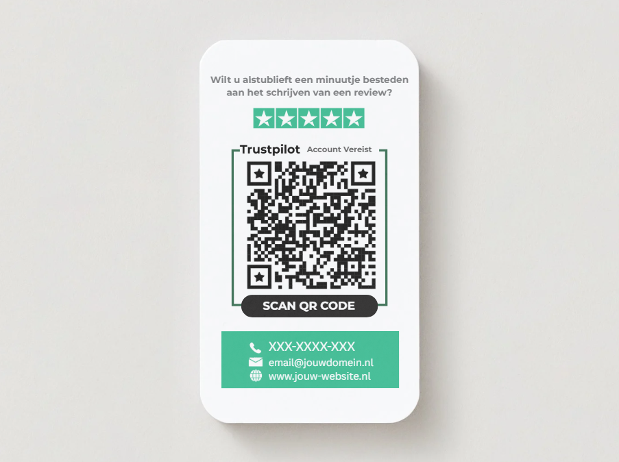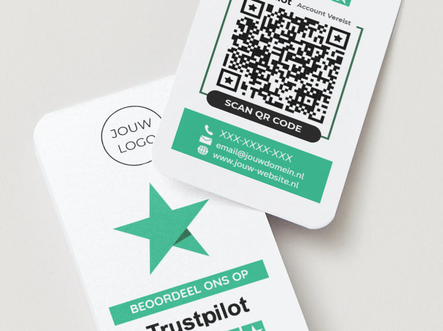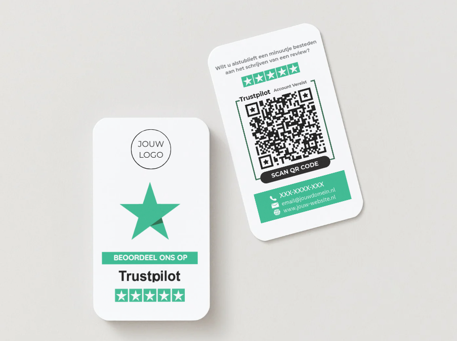 - Wij ontwerpen jouw visitekaart en reviewkaart voor €39,95, inclusief onbeperkte revisies.